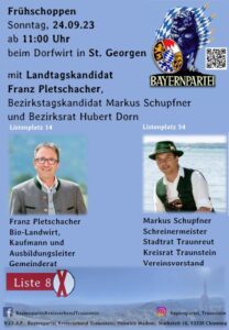 Frühschoppen mit Landtagskandidat Franz Pletschacher, Bezirkstagskandidat Markus Schupfner und Bezirksrat Hubert Dorn
